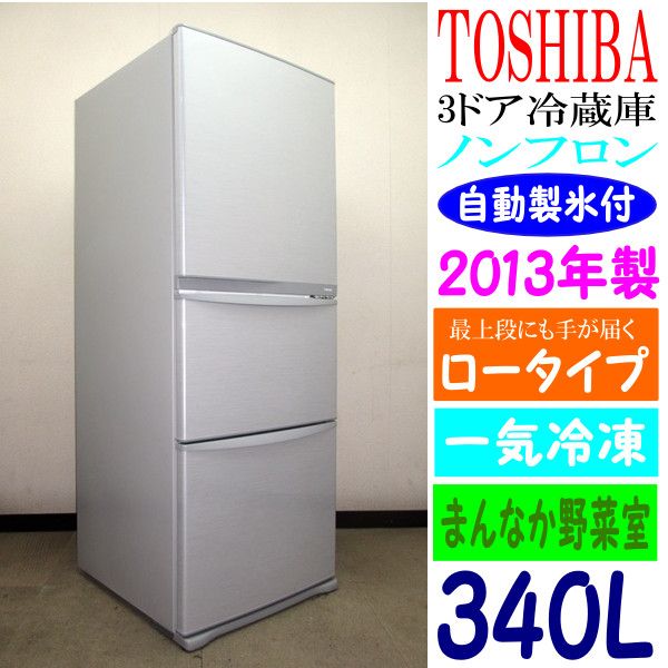 | 商品の特徴 | 商 品 の 主 な 仕 様 メーカー 東芝 年式 2013年製 型式 GR-34ZY(SS) サイズ 幅600mm 奥行684mm 高さ1608mm 容量 冷凍88L 冷蔵252L 総合340L 消費電力量 460kwh/年 色 ブライトシルバー