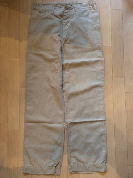 | 商品の特徴 | OLD JOE|FRONT TUCK ARMY TROUSER- STOTELA clothing storeややゆとりのあるリラックスシルエットが特徴のアーリーアーミートラウザーです。 経糸にムラ綿糸、緯糸にラミー糸を用いて、大阪の泉州であえて糸本数を減らしルーズに織ったチノクロスは通気性に優れています。 OLD JOE|FRONT TUCK ARMY TROUSER- STOTELA clothing storeまた、オールドジョー独自のレシピで行う染色により、味わい深い表情を持っています。 OLD JOE FRONT TUCK ARMY TROUSER (BUTTER) 231OJ-PT08 公式通販■定価 : 25920円(税込) ■カラー:SAND BEIGE ■サイズ:32 (ウエスト84cm・股上31cm・股下81cm・裾幅23 OLD JOE|FRONT TUCK ARMY TROUSER- STOTELA clothing storecm) ※多少の誤差はご了承下さい。 ■素材:コットン100% ■新品未使用、タグ付き(自宅保管) ※ノークレームノーリターンでお願いします。 ※送料は全国一律500円とさせて頂きます。北海道、沖縄、離島は1000円とさせていただきます。