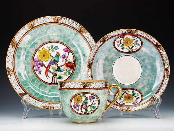 - ホーム > アンティーク、コレクション > 工芸品 > 陶芸 > 西洋陶磁 > オールドノリタケ >オールドノリタケ・金彩ラスター彩花鳥図紋 キャビネットトリオ