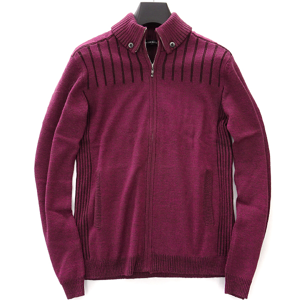 新品1.9万! インターメッツォ 伊E.Miroglio社製ウール混ジップアップリブニットMワイン★I12478 INTERMEZZO ドンキーカラー