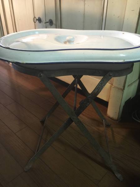 | 商品の特徴 | こちらは大変珍しいフランス製のアンティーク ビデです。 フランスから届いたアンティークの洗面台、オトナ色のウォッシュ桶の中は使用感があり欠けもありますが穴は空いていません。 蓋の表側は綺麗ですが、内側には欠けが2箇所あります。 スタンドはアイアン製で錆びているため畳むことはできません。 ウォッシュスタンド (梱包費別途)またホウロウ桶がスタンドの受け口にぴったりとはまらないのでおそらく オリジナルのものではないと思いますが、 ウォッシュスタンド-Antique DejaVU(アンティークデジャヴ上に設置してディスプレイする時に見た目に違和感があるというような事はないです。 フランスホーロー製ウォッシュスタンドはかわいいアンティークネットただ完璧な状態をお望みの方にはオススメできないお品です。 フランスから届いたアンティークの洗面台、オトナ色のウォッシュサイズ:31cmx50cmh44cm 他にも多数 出品していますので是非ご覧ください。 アンティーク・ビンテージ商品のため、ノークレーム・ノーリターンでお願い致します。